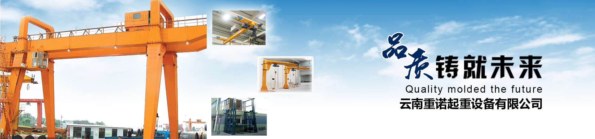 云南重諾起重設備有限公司主要經營銷售:橋式起重機、門式起重機、懸掛起重機、旋臂起重機、電動葫蘆、升降貨梯、電動平車、液壓升降平臺、升降搬運設備、起重配套工具、起重軸承、起重機各部位配件。公司產品暢銷全國各地,深受用戶的信賴。  公司通過了ISO9001 :2000質量體系認證具備320T及以下噸位橋式起重機、280T及以下噸位門式起重機特種設備制造許可證.320T及以下起重機的特種設備安裝......更多>>